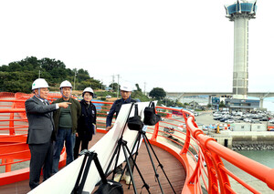 장세일 영광군수는 지난 10월 30일 염산면 옥실리 일원에 추진 중인‘영광 칠산타워 주변 관광자원 개발사업’현장을 방문해 전반적인 추진 상황을 점검했다.‘영광 칠산타워 주변 관광자원 개발사업’은 향화도와 인근 무인도인 목섬을 연결하는 인도교 설치 공사로 총 연장은 335m, 폭은 2.5~3.0m이며 총 59억 원이 투입되는 사업이다. 칠산 놀빛교는 향화도의 주요 관광자원인 노을빛을 배경으로 교량과 난간의 색상을 채택 했으며, 목섬 연결교(놀빛 1교)와 목섬 간 연결교(놀빛 2교)는 구간별 높낮이를 달리한 입체적 동선을 적용해 관광객
