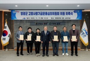 영광군(군수 장세일)은 11월 17일 군청 소회의실에서 임기가 새로 시작되는 영광군 고향사랑기금운용심의위원회 위원 6명에 대해 위촉장을 수여하였다.영광군 고향사랑기금운용심의위원회는 기금 관련 분야 전문지식과 경험이 풍부한 세무사, 대학교수 등 위촉직 6명과 당연직 3명 위원으로 구성되었으며, 앞으로 2년의 임기 동안 기금의 효율적이고 공정한 운용과 기금사업 선정 등에 관련 사항 심의 및 자문을 제공할 예정이다.위촉식 개최 후 이어진 2025년 제6회 영광군 고향사랑기금운용심의위원회 회의에서는 2026년 고향사랑기금운용계획 수립 안건