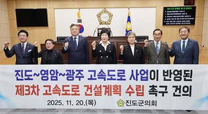 전라남도 진도군의회(의장 박금례)는 제312회 진도군의회 정례회에서 ‘진도, 영암, 광주 고속도로 사업’을 ‘제3차 고속도로 건설계획’에 반영해 줄 것을 촉구하는 건의안을 채택했다.진도군의회에 따르면, 건의안에는 진도, 해남, 영암, 광주를 연결하는 고속도로망 구축이 ▲지역 농수산물 유통 효율화 ▲관광 접근성 향상 ▲지역균형발전 촉진 ▲인공지능(AI) 기반 신산업 육성에 필수적이라는 지역의 강한 요구가 담겼다.진도군은 대파, 김, 전복 등 주요 농수산물의 안정적인 물류 이동 경로를 확보하기 위해 고속도로 건설이 꼭 필요하다는 점을