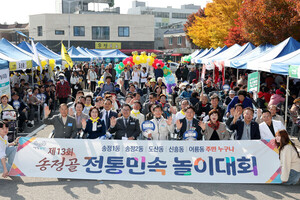 광주 광산구(구청장 박병규)는 전통 민속놀이를 통해 주민들의 화합을 도모하고 잊혀가는 전통문화를 계승·보존하는 ‘제13회 송정골전통민속놀이대회’가 지난 6일 성황리에 열렸다고 밝혔다.이번 행사는 광산구 송정골전통민속놀이대회 추진위원회(위원장 김대성) 주관으로 송정5일시장 주차장에서 진행했다.이날 역사전통도시인 △송정1·2동 △도산동 △신흥동 △어룡동 주민들이 참여해 전통 민속놀이인 △투호 △제기차기 △고무신 던지기 △풍선 불어 날리기 등을 진행했다.또한 주민들 노래자랑 경연, 장구 공연, 먹거리 공간 등 다채로운 프로그램을 구성해