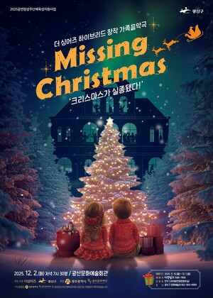 광주 광산구(구청장 박병규)가 12월 2일 광산문화예술회관에서 천원문화마실 제8편 창작가족음악극 ‘Missing Christmas-크리스마스가 실종됐다!’를 선보인다.지난 5월부터 시작된 천원문화마실 공연은 광산구에서 추진 중인 ‘천원더가치프로젝트’ 중 하나로, 지속적인 경기 침체로 지친 지역민들에게 다양한 문화예술 공연을 1,000원으로 부담 없이 즐길 수 있도록 마련된 정책이다.‘Missing Christmas-크리스마스가 실종됐다!’는 사라진 크리스마스를 주제로 클래식·재즈·성탄 곡을 쉽고 친근하게 즐길 수 있는 뮤지컬 형태의
