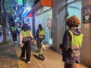 광주 광산구 수완동(동장 임은진)은 지난 24일 수완호수공원에서 수완동 반려견 순찰대 야간 합동 순찰을 실시했다.지난달 23일에 진행한 첫 합동 순찰에 이어 지역 사회의 안전을 지키기 위한 두 번째 활동이다.순찰대는 수완호수공원 일대 및 인근 주택가의 치안 불안 요소와 안전 취약 지역을 점검했다.아파트 및 주택가의 인근 골목길에 설치된 비상벨·가로등 점검, 순찰대원을 대상으로 한 신고 요령 교육도 함께 진행했다.활동에 참여한 김영수 순찰대원은 “반려견과 함께 지역을 안전하게 지킬 수 있다는 점에서 보람을 느낀다”라며 “이번 활동을