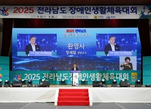 영광군(군수 장세일)은 9월 25일 영광 국민체육센터에서 「2025 전라남도장애인생활체육대회」개회식을 열고, 1박 2일간의 화합과 감동의 대장정을 시작했다. 이번 대회는 장애인과 비장애인이 함께 어울리며 생활체육의 가치를 나누고 도민의 이해와 화합을 증진하는 데에 의의가 있다.이날 개회식에는 김영록 전라남도지사, 장세일 영광군수, 박정현 도장애인체육회 상임부회장, 김종택 전남지체장회장, 전라남도 시장· 군수 등 주요 인사를 비롯해 선수단과 자원봉사자, 지역주민 등 2,250여 명이 참석하여 대축전의 개막을 함께 축하했다.이번 대회는