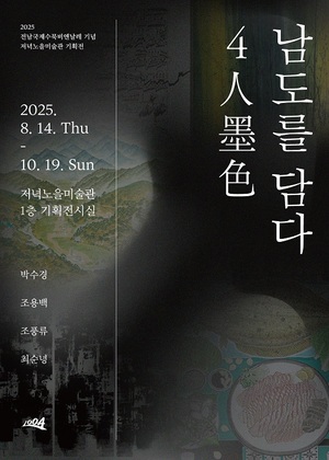 신안군 저녁노을미술관은 2025 전남국제수묵비엔날레를 기념하여 기획전 ‘4人墨色: 남도를 담다’를 개최한다고 밝혔다. 이번 전시는 오는 8월 14일(목)부터 10월 19일(일)까지 열리며, 남도의 예향 정신과 수묵의 매력을 담아낸 한국화 작품 22점을 선보인다.이번 전시에 참여하는 작가는 박수경, 조용백, 조풍류, 최순녕으로, 모두 신안·목포 출신이자 지역을 기반으로 활발하게 활동하는 중견 작가들이다.작가들은 자신들만의 독특한 시선과 표현 기법으로 남도의 자연과 삶을 담아내며, 수묵의 다채로운 미학을 조명할 예정이다.특히, 이번 전