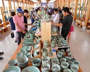 고려청자박물관의 여름은 올해도 분주하다. 그 이유는 단순히 유물 전시 때문만이 아니다. ‘일 잘하는 강진군’답게, 청자의 아름다움과 가치를 널리 알리고 지역경제와 상생하기 위한 고려청자 상시 할인 판매와 온라인 경매 프로그램이 한창이기 때문이다.청자촌공동전시판매장에 전시된 관요 작품은 강진군 음식점이나 숙박업소 영수증을 제시하면 할인받을 수 있다. 식사를 했다면 20%, 하룻밤을 묵었다면 30%다. 단, 3만원 이상 작품부터 해당되므로 기념품이라도 격조 있게 고르게 된다. 현재 전국적으로 인기있는 관광상품인 ‘강진 누구나 반값여행’