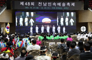 제48회 전라남도 민속예술축제가 ‘전남의 얼과 흥, 강진에서 하나로!’를 주제로 27일 강진군 제1실내체육관 일원에서 성황리에 막을 올렸다.이번 축제는 전남의 전통 민속예술을 보존·계승하고 도민 화합을 도모하기 위해 매년 이어지는 전남의 대표적인 문화축제로, 올해는 전남 17개 시·군에서 26개 단체(일반부 17팀, 청소년부 9팀)가 참여해 지역별 특색 있는 민속예술 경연을 선보인다.개막식은 27일 오전 10시 강진군 제1실내체육관에서 진행됐다. 식전공연으로 전라남도립 어린이국악단의 흥겨운 국악무대가 마련돼 관객들의 즐거움을 선사했