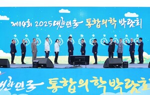 2025 대한민국 통합의학박람회가 26일 장흥군 안양면 국제통합의학박람회장에서 막을 올린다.오는 26일부터 30일까지 5일간의 일정으로 펼쳐지는 올해 박람회는 ‘치유, 통합의학으로 답하다’란 주제로 진행된다.전남도와 장흥군이 공동 개최하는 이번 박람회는 전국대학병원, 대학, 의료기관, 단체 등 70여 개 기관에서 의료진과 전문가가 참여한다.개막식은 26일 오후 2시 박람회 주무대에서 시작한다.박람회 주제영상 상영, 통합의학의 주제를 함께 써내려가는 캘리그라피 대붓 퍼포먼스 등이 개막 행사로 마련됐다.이어진 축하공연에는 송가인, 손빈