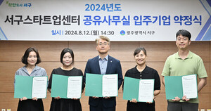 광주광역시 서구(구청장 김이강)가 청년창업가들에게 사무실을 무상으로 제공해 경제적 부담을 덜어주고 창업 활성화를 꾀하고 있다. 특히 서구는 지난해부터 서구스타트업센터(농성역 지하1층) 내에 공유사무실을 마련해 1인 기업들을 적극 지원하고 있다.서구에 따르면 서구는 12일 공유사무실 입주기업 4곳과 업무협약을 체결했다. 입주기업은 공모를 통해 선정했으며 ▲랜인바이오(대표 조인아, 반려동물 덴탈케어 제품 개발) ▲플렉스메디(대표 최재혁‧이원균, 인체 삽입용 의료용품 개발) ▲지니어스컨설팅(대표 김여진, 청년 등 생애주기별 금융교육 사업