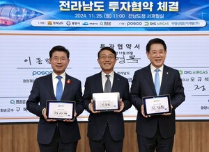 광양시와 전라남도가 ㈜포스코와 대규모 투자협약을 맺었다. 저탄소 제철산업으로의 전환을 통해 탄소중립을 위한 국제사회의 움직임에 동참하겠다는 취지다.광양시는 25일 전남도청 서재필실에서 ㈜포스코, 광양시, 전라남도 간 투자협약이 체결됐다고 알렸다. 협약식은 김영록 전라남도지사, 정인화 광양시장, 이동렬 ㈜포스코 광양제철소장 등이 참석한 가운데 진행됐다.㈜포스코는 산업·에너지 대전환이라는 글로벌 변혁기에 ‘탈 탄소’·‘그린철강’ 목표를 달성하기 위해 탄소중립 관련 기술 개발과 설비 투자를 적극적으로 추진하고 있다. 유럽연합의 탄소국경조