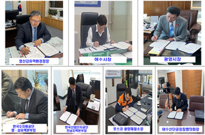 영산강유역환경청(청장 김영우)은 ‘22~’23년 남부지역의 극한 가뭄을 겪으면서 광양만권의 안정적인 용수 공급 필요에 따라 “광양만권 물 공급망 구축을 위한 2030 로드맵”을 마련하고, 실효적 이행을 위해 지자체, 산업계와 업무협약을 12월 23일 체결했다고 밝혔다.참여 기관은 여수시, 광양시, 한국수자원공사, 한국산업단지공단, 포스코 광양제철소·여수산업단지공장장협의회(이하 ‘산단기업’이라 한다)로, 용수 사용량이 많은 주요 기업 등이 참여했다.※ 여수산업단지공장장협의회는 협의회장인 GS칼텍스를 비롯하여, 금호석유화학(주), 여천