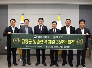 담양군(군수 정철원)이 농림축산식품부와 ‘농촌협약’을 체결하며 향후 5년간 총 369억 원 규모의 농촌개발 사업을 본격 추진한다.군은 지난 15일 서울 아모리스 역삼에서 열린 농촌협약 체결식에 참석해 농림축산식품부와 협약을 맺었다. 이날 행사에는 송미령 농림축산식품부 장관을 비롯해 전국 21개 협약 지자체장과 관계자 200여 명이 함께했다.협약에 따라 담양군은 농림축산식품부의 전문가 컨설팅 및 계획 보완 절차를 거쳐 2029년까지 국비 185억 원을 포함한 총사업비 369억 원을 투자하게 된다.이를 바탕으로 단일생활권 계획에 따라