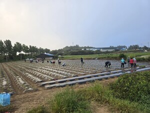 전남 함평군의 농업인 단체들이 연말 김장김치 나눔 행사를 앞두고 배추 정식에 나서며 지역사회에 따뜻한 나눔의 씨앗을 심었다.함평군은 8일 “(사)한국후계농업경영인 함평군연합회(회장 심재식)와 (사)한국여성농업인 함평군연합회(회장 이은정)는 지난달 30일 대동면 소재 750평 규모의 밭에서 배추 정식 작업을 실시했다”고 밝혔다.이번 행사는 소외계층에게 온정을 나누고, 농업인 단체의 사회적 책임을 실천하기 위해 마련됐다. 행사에는 양 단체 임원 40여 명이 참여해 구슬땀을 흘리며 하나 된 마음으로 총 7,500주의 배추 모종을 심었다.