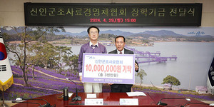 전라남도 신안군조사료경영체협회(회장 김성철) 임원과 회원들은 지난 29일 신안군청을 방문해 신안 지역의 인재 양성과 교육 발전을 위해 써달라며 장학금 1,000만 원을 (재) 신안군장학재단(이사장 박우량)에 기탁했다.30일 신안군데 따르면, 김성철 회장은 “신안군 미래를 끌어 나갈 훌륭한 인재를 키우는 일에 조금이나마 보탬이 되길 바란다”라고 기탁 소감을 밝혔다.박우량 이사장은 “지난해 2,000만 원에 이어 올해까지 지역 후배들을 위해 장학금을 맡겨 준 것에 대해 감사드린다”라며 “그 뜻이 퇴색되지 않도록 맡겨 주신 장학금은 지역