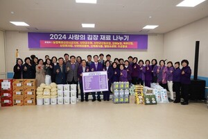 신안군복지재단(이사장 강정희)은 지난 18일 신안군공설운동장에서 후원단체, 신안군여성단체협의회 회원을 비롯한 관계자 등 100여 명이 참석한 가운데 ‘2024년 사랑의 김장재료 후원물품 전달식’을 진행했다고 밝혔다.이날 전달식에는 농협목포신안시군지부, 신안군수협, 신안군산림조합, 목포신협, 압해농협, 신안천사김, 신백록식품, 어의풍력발전, 신의면 웰빙소금밭, 신의면 소금동네 등 11개 기관에서 3,500만 원 상당의 새우젓 등 김장재료 7종을 후원하여 신안군여성단체협의회와 사회복지시설에 전달했다.신안군여성단체협의회 안미영 회장은 “