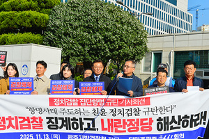 더민주 광주혁신회의(상임대표 김영광)는 13일 오후 2시 광주지방검찰청 앞에서 기자회견을 열고, 최근 검찰 내부의 대장동 사건 항소 포기 논란을 “쿠데타적 항명”이라 규정하며 강하게 비판했다.이들은 이날 발표한 기자회견문을 통해 “이번 사태의 본질은 항소 여부가 아니라 윤석열 정권 하(下)의 정치검찰이 내부 규정까지 무시하며 공개 항명에 나선 것”이라며 “법원의 1심 판결이 검찰 구형보다 높은 형량이었음에도 항소를 고집하는 것은 법리 판단이 아닌 정치적 자기 보호 행위”라고 주장했다.이어, "박근혜 정부의 청와대 하명 수사에서 윤석