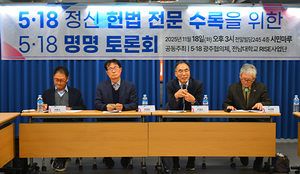 5·18정신 헌법 전문 수록을 위한 5·18 명명(命名) 토론회’가 18일 오후 3시 광주 전일빌딩 4층 시민마루에서 5·18 광주협의체와 전남대학교 RIDE사업단의 공동주최로 열렸다.이번 토론회는 ▲5·18정신의 헌법 전문 수록 필요성에 대한 여론 환기 ▲5·18정신의 가치와 이행 문제 재점검 ▲헌법 전문에 수록될 5·18 관련 명칭 도출 필요성 확산을 목적으로 마련됐다. 주제발표는 주철희 박사(함께하는 남도학 연구원 이사장), 최영태 전 전남대 교수, 유봉식 진보연대 대표가 맡았다.사회는 국유정 씨가 맡아 토론 배경을 소개하며