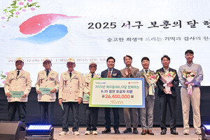 광주광역시 서구의 고액 기부자 모임 ‘서구아너스’가 6월 호국보훈의 달을 맞아 참전유공자와 유족을 위한 감사와 예우의 자리를 마련하고, 민관협력 기반의 지원 확대에 나섰다.서구아너스는 12일 웨딩그룹 위더스 광주에서 열린 2025년 보훈단체 헌정식에서 6·25 참전유공자 88명에게 ‘숭고한 희생에 드리는 기억과 감사의 헌사’의 의미로 온누리상품권 30만원씩 전달했다.이날 헌정식에는 지역 내 12개 보훈단체 회원 등 300여 명이 참석한 가운데 보훈단체들이 금파공업고등학교 군특성화과 학생들과 함께 상징 깃발을 앞세워 세대 통합 입장