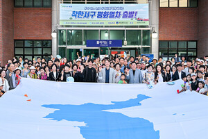 광주광역시 서구(구청장 김이강)는 22일 오전 6시32분 주민 328명이 탑승한 ‘착한서구 평화열차’가 효천역을 출발해 5시간여 만에 파주시 임진각역에 도착, 역사적인 첫 운행을 마쳤다고 밝혔다.광복 80주년을 맞아 마련된 이번 평화열차는 5‧18민주화운동과 8‧15광복의 역사와 정신을 잇는 특별기차다. 출발 전 효천역 광장에서는 ‘광복80주년, 평화를 싣고 통일로’를 주제로 대형 한반도기에 평화와 통일의 염원을 담은 종이비행기를 날리는 출무식이 열렸다.열차 안은 ‘움직이는 평화교실’로 꾸며졌다. 8‧15광복, 5‧18주먹밥, 20
