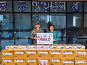공군 제1전투비행단 통합교육훈련대대(대대장 최선영 소령)가 13일 신학기를 맞아 조손가정 아동을 위한 후원금(50만 원)을 기탁했다.대대 내 복무 중인 40여 명의 장병들이 매달 십시일반 모은 후원금은 지난 2023년 11월부터 지정 후원 중인 도산동 조손가정 아동의 신학기 학용품 구입 등으로 사용될 예정이다.