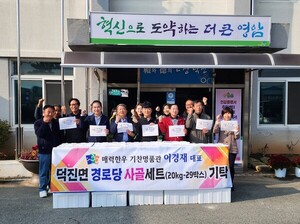 영암군 영암읍의 매력한우 기찬랜드 명품관 이경재 대표가, 12일 덕진면 경로당 29곳에 300만원 상당의 한우사골 20kg 들이 29박스를 기부했다.이 대표는 “덕진면에 귀농하며 영암에 정착해서 경로당에 기부를 결심했다. 지역에 나눔문화가 확산될 수 있도록 정성을 계속 보태나가겠다”라고 말했다.이 대표는 10년 이상 꾸준한 나눔으로 지역사회의 귀감이 되고 있다.