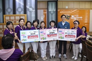 광주전남시도민회 여성회(회장 유영숙)가 9일 영암군을 찾아 고향사랑기부금 200만원을 전달했다.회원 33명이 1박 2일 일정으로 완도·영암 지역 고향 방문하는 일정을 진행하던 여성회는 영암군을 찾아 나눔을 실천하며 그 의미를 더했다.영암읍 축협한우플라자에서 열린 고향사랑기부금 전달식에서 유영숙 회장, 김근애 영암군여성회장을 포함한 여성회 임원들은 십시일반한 성금을 영암군에 전했다.유영숙 광주전남시도민회 여성회장은 “고향의 발전과 지역사회에 보탬이 되고자 회원들의 뜻을 모았다”고 전했다.여성회 회원들은 이후 월출산기찬랜드, 왕인박사유