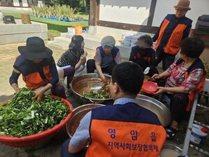 영암군 영암읍지역사회보장협의체(공동위원장 김남두, 전의홍)가, 19일 ‘사랑의 반찬 나눔’으로 홀몸 어르신과 거동 불편 장애인 가구 49세대에 열무김치, 계란 등이 담긴 반찬 꾸러미를 전달하고, 안부를 살폈다.전의홍 영암읍지사협 민간위원장은 “이른 시간부터 열무김치를 담근 위원들에게 감사드린다. 어르신과 장애인 등 이웃들이 여름철을 건강하게 나면 좋겠다”고 말했다.영암읍지사협은 사랑의 반찬 나눔 이외에도 위기가정 발굴, 긴급 지원, 복지자원 연계 등 다양한 활동을 펼치며 이웃이 이웃을 돌보는 지역복지공동체 구현에 앞장서고 있다.