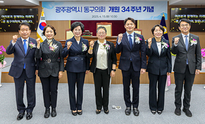 광주 동구의회(문선화 의장)가 15일 본회의장에서 '광주 동구의회 개원 제34주년 기념식'을 진행했다.동구의회에 따르면, 이날 기념식은 문선화 의장을 비롯한 전‧현직의원, 임택 동구청장 및 내‧외빈들과 주민들이 참석한 가운데 진행됐으며, 의회 홍보영상 시청과 경과보고, 문 의장의 기념사 등의 순서로 진행됐다.동구의회는 1991년 4월 15일 25명의 의원으로 제1대 의회가 개원한 이래, 현재 제9대 의회까지 지난 34년 동안 구정에 대한 건전한 비판과 바람직한 정책을 제시하기 위해 총 316회의 정례회와 임시회를 통해 1,820건의