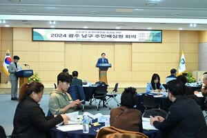 광주 남구(구청장 김병내)는 지역사회의 지속 가능한 발전 토대를 마련하기 위해 이재명 국민주권 정부에서 추진하는 국정 운영 5개년 계획과 연계한 2026년도 신규‧역점 시책 발굴 속도를 높이고 있다.29일 남구에 따르면 김병내 구청장을 비롯해 간부 공무원 50여명은 최근 구청 8층 대회의실에서 내년도 신규‧역점 시책 보고회를 개최했다.지역사회의 중단없는 발전과 주민 행복 증진을 위해 정부의 국정과제와 광주광역시 핵심사업에 발맞춘 정책사업을 우선 발굴하고, 국‧시비 예산 확보를 위한 선제 대응 차원에서 중장기 사업까지 미리 챙기기 위