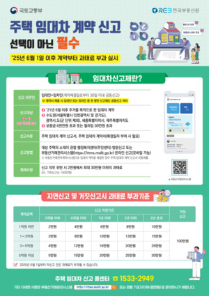 광양시(시장 정인화)는 「주택 임대차 계약 신고제」 계도 기간이 2025년 5월 31일로 종료됨에 따라, 6월 1일 이후 체결된 계약부터는 지연 신고 및 거짓 신고에 과태료를 부과한다고 28일 밝혔다.주택 임대차 신고제는 임대차 시장의 실거래 정보를 투명하게 공개하고 임차인의 권리를 보호하기 위해 도입된 제도다. 신고 대상은 2021년 6월 이후 주거를 목적으로 한 임대차 계약으로, 보증금 6천만 원 또는 월차임 30만 원을 초과하는 주택 임대차 계약 체결 시 계약일로부터 30일 이내에 신고해야 한다.임대차계약 신고는 임대인, 임차