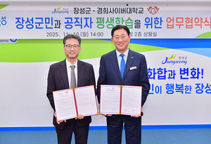 전라남도 장성군이 10일 군청 상황실에서 경희사이버대학교와 업무협약을 체결했다. 김한종 장성군수, 신봉섭 경희사이버대학교 부총장 등 관계자 10여 명이 참석했다.10일 장성군에 따르면, 협약에 따라 두 기관은 △군민·공직자 평생교육 기회 확대 △지역 기반 학습 프로그램 개발 △온·오프라인 교육 연계사업 등을 공동 추진할 계획이다.특히, 군민과 공직자를 대상으로 등록금 감면 혜택을 적용하기로 한 점이 주목된다. 군 공직자는 50%, 장성군민과 공직자 가족은 30%까지 수업료 감면이 가능하다. 국가장학금을 신청한다면 거의 무료로 학·석