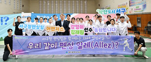 “태극전사들을 착한 서구가 응원합니다” 광주광역시 서구(구청장 김이강)가 펜싱 국가대표로 파리올림픽에 출전한 서구청 소속 강영미‧김재원 선수에게 응원 메시지를 전했다.서구는 지난 26일 오후 염주체육관 펜싱훈련장에서 펜린이(성인반) 펜싱교실 종강식을 가졌다. 서구는 국가대표 등 서구청 펜싱팀의 재능기부로 성인과 어린이, 부모와 자녀가 함께 참여하는 가족반 등 연령대별 펜싱교실을 무료 운영하고 있으며, 성인 대상 펜싱교실이 26일 한 달 간의 수업을 마무리했다.펜싱교실 참가자들은 “각종 대회에서 선수들의 활약을 지켜보면서 펜싱을 꼭