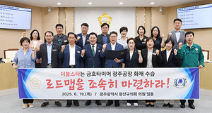 광주광역시 광산구의회(의장 김명수)가 최근 발생한 금호타이어 광주공장 화재와 관련하여 금호타이어 대주주인 더블스타 측에 화재 수습 로드맵 마련을 강력히 촉구했다.19일 광산구의회에 따르면, 광산구의회는 19일 박현석(더불어민주당, 송정1·2동·도산동·어룡동·동곡동·평동·삼도동·본량동) 의원이 대표발표한 성명서를 통해 “화재로 인해 4,500억 원 규모의 경제 손실과, 2,000여 개 일자리 감소가 예상되는 등 지역경제 성장에 ‘빨간 불’이 켜졌다”고 강조했다.특히 “화재 발생 한 달이 넘도록 더블스타 측이 침묵하고 있고, 공장 재건