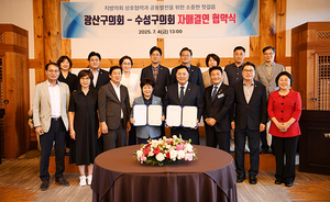 광주광역시 광산구의회(의장 김명수)가 대구 수성구의회(의장 조규화)와 교류협력과 상생발전을 위해 손을 맞잡았다.광산구의회는 4일 전북 남원 일원에서 수성구의회와 자매결연 협약을 체결했다. 이날 협약식은 양 의회 의장단 등 총 30여명이 참석한 가운데 진행됐다.4일 광산구의회에 따르면, 광산구의회와 수성구의회는 지난해 9월 광산구의회의 제안으로 검토가 시작되어 자매결연 의향을 교환해 왔으며, 지난해 11월 수성구의회 의장단의 광산구 방문, 올해 4월 광산구의회 의장단의 수성구 방문 등을 거치며 협약을 본격 추진했다.양 의회는 이번 협
