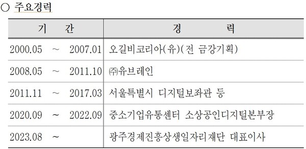 김 내정자는 특히 광주경제진흥상생일자리재단 대표이사로 활동하며 ‘배달의민족 독립 선언’을 통해 소상공인 전용 공공배달앱 활성화와 소상공인 디지털 전환 사업을 이끌었다.